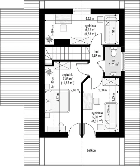 - Dwie wygodne sypialnie oferują prywatność i miejsce do odpoczynku, doskonale spełniając wymagania zarówno dla domowników, jak i ewentualnych gości.